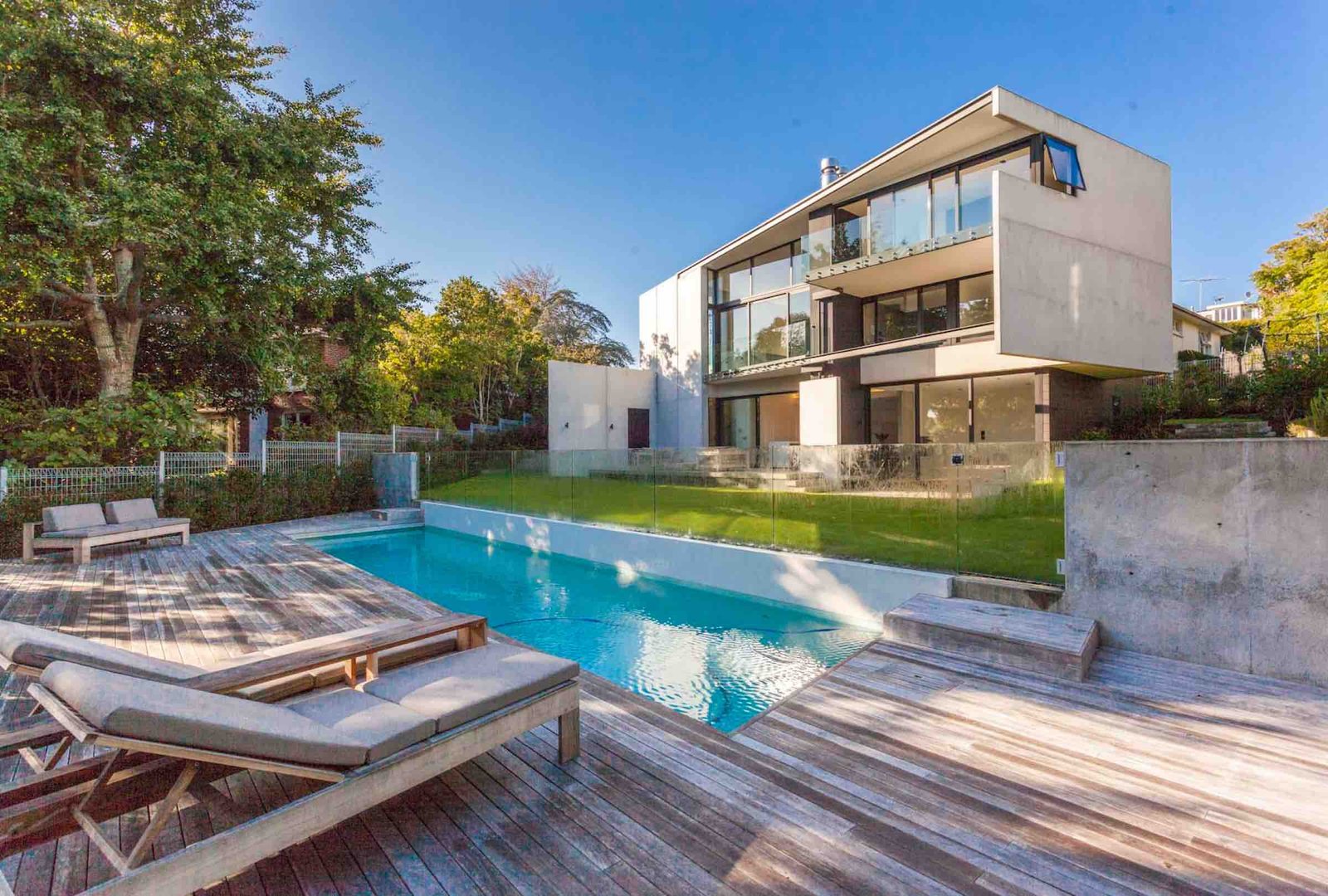 Complex architectural design with precast panels Swimming pool Masonry and timber framed construction